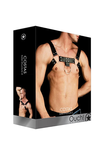 Costas - Solid Structure, de la marque Ouch! est un harnais BDSM très solide pour homme, en cuir et métal, qui s'adapte à tous vos jeux de bondage en toute sécurité.