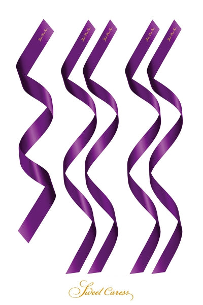 Les 5 attaches sont en satin pourpre, avec l'inscription "juste pour toi" imprimée sur chacune d'elles.