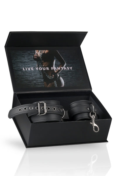 Affirmez votre autorité en attachant les chevilles de votre esclave avec les "Ankle Cuffs" de la marque Easytoys Fetish Collection, des menottes pour chevilles de grande qualité en simili cuir et métal, idéales pour la pratique des jeux de domination et soumission.