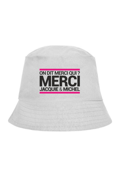 Idéal pour un barbecue, une partie de pétanque, une balade en forêt, ou simplement pour se protéger du soleil, Jacquie & Michel vous propose son bob 100% coton avec broderie "ON DIT MERCI QUI? sur le devant.