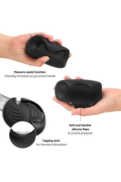 Mais son véritable super pouvoir reste sa fonction Pleasure assist. Activable ou non selon les envies, elle permet, grâce à ses capteurs intégrés, daugmenter lintensité du tapping par simple pression du stimulateur. Cette fonction, absolument unique sur le marché, alliée à la souplesse des ailettes en silicone rendent lutilisation du produit encore plus intuitive.
