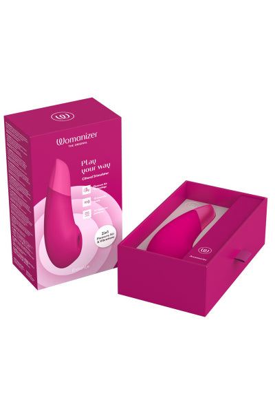 Le Womanizer Enhance, à la fois ergonomique et maniable, enthousiasme avec la nouvelle combinaison unique de stimulation sans contact par technologie Pleasure Air et des vibrations ultra puissantes.