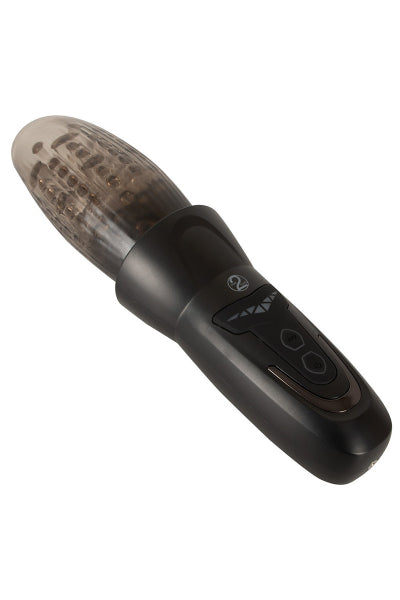 Le masturbateur stimule le pénis avec de puissants mouvements de haut en bas et des vibrations pénétrantes. Le plaisir à la puissance 3 par simple pression sur un bouton !