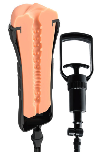 Le masturbateur est équipé d'un SuctionPort Cap avec pompe d'aspiration afin d'offrir une aspiration et une stimulation hyper puissantes. La fonction AirLock Cap permet quant à elle d'ajuster finement la dépression et de régler la résistance lors de la stimulation.